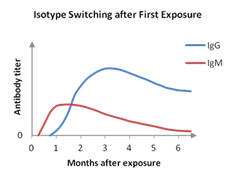 Reaching high titers depend on many parameters, one of them being time of sample collection after first exposure (immunization). Top titer-levels are often reached after 3 months (see schematic figure on right hand).